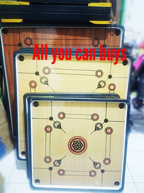 Papan karambol Besar ukuran 90x90cm. Sebesar uang logam ke dalam kantung. Permainan ini berasal dari India dan menyebar luas ke berbagai negara lainnya pada tahun 1970-an.